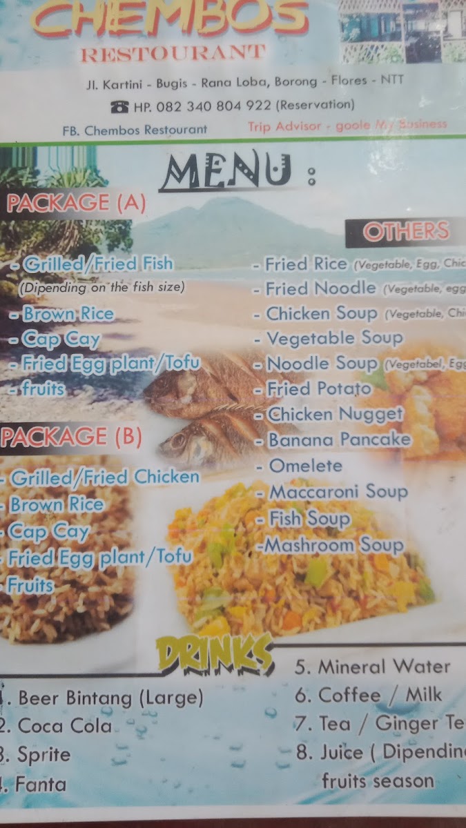Welcome to Chembos Restaurant, a hidden gem located in the heart of Rana Loba, Kabupaten Manggarai Timur, Indonesia. This charming eatery is renowned for serving up fresh, flavorful dishes at unbeatable prices. Whether you're in the mood for grilled fish or chicken, you'll find the options here are not only plentiful but also delightfully satisfying. Package deals like the grilled fish, rice, cap cay, and fried aubergine—complete with fresh fruit—are a highlight for many, as noted by satisfied diners who rave about the value for money.